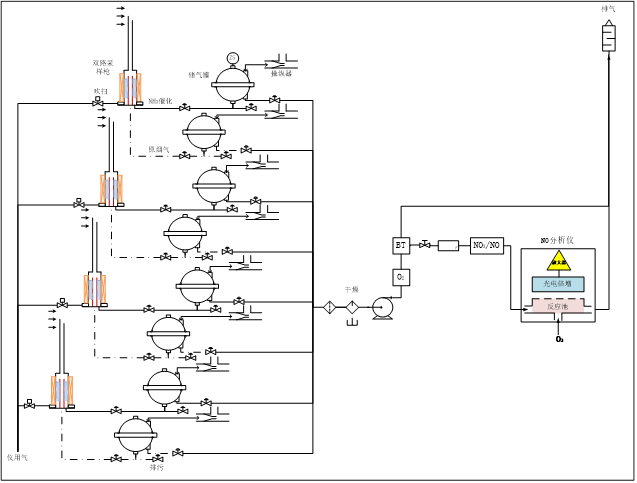 ◇ 选用化学发光法检测NO。在化学发光法测量系统中,未对样气进行稀释时仪表测量精度达ppb级,为杜绝多点稀释比不一致和稀释比随着污染而改变引起的误差,该系统采用非稀释法取样,从而确保分析仪表的高精度、无漂移测量。